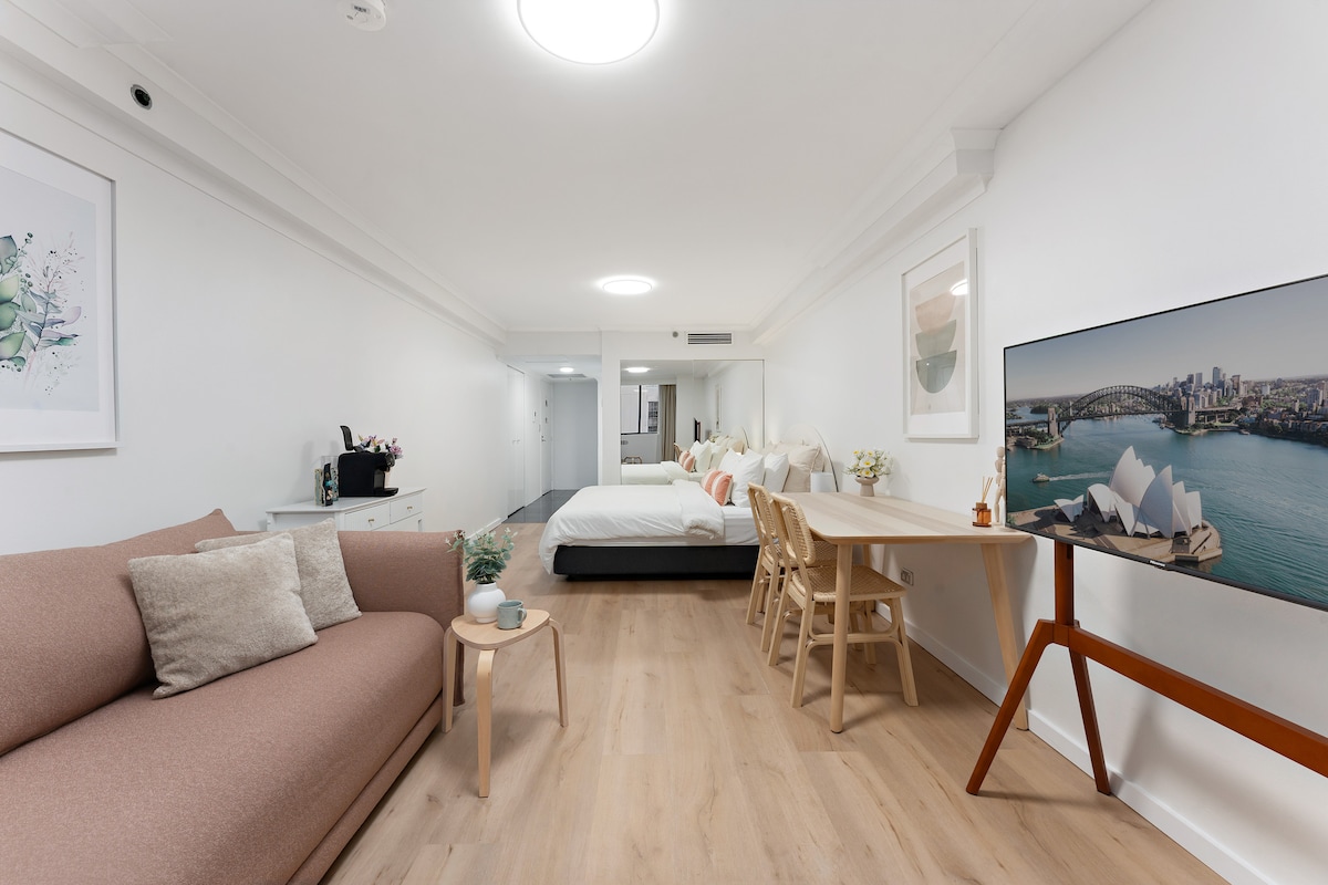 Very comfortable modern 24 Sqm (258sq feet) studio 3 minutes walk to Kings Cross station transport beaches and city all at your doorstep. Walking distance to city parks and beaches and surrounded by great cafes and restaurants gym etc Easy 15 minute walk to the city centre * Strictly no smoking in studio or common property Please note: No Air conditioning just electric fan. *No parking