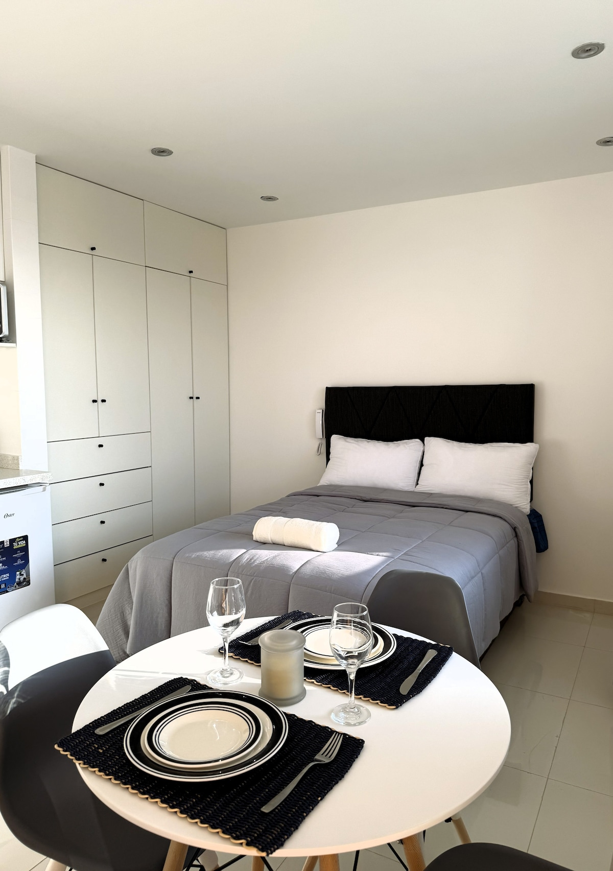 Un mini departamento acogedor de 45 metros cuadrados, ideal para una estancia cómoda. Cuenta con una habitación con cama de una plaza y media, además de un sofá-cama en la sala. Dispone de internet de alta velocidad y agua caliente. Está ubicado en una zona rodeada de restaurantes y con fácil acceso a servicios. Perfecto para disfrutar de una estancia práctica y placentera.