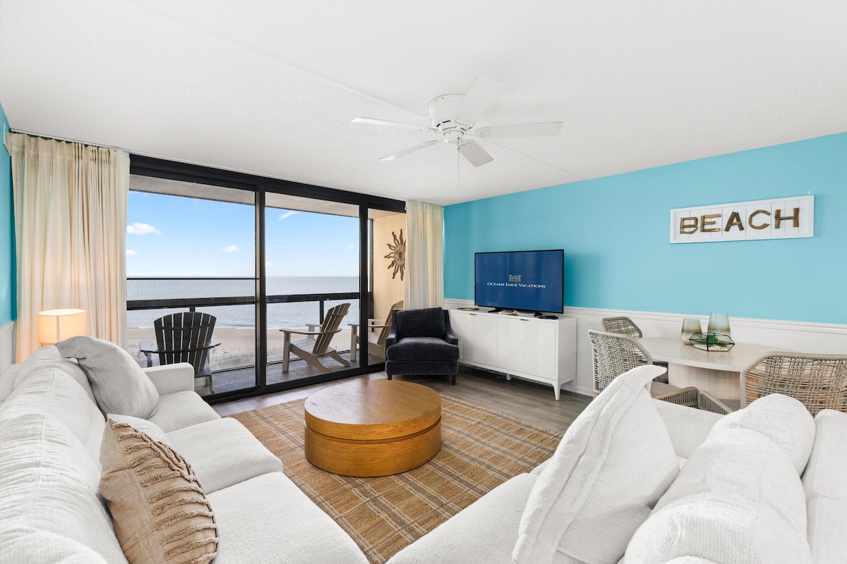 Your family will be close to everything when you stay at this beautiful condo located right on the beach with expansive balcony views of both ocean and bay. With the best amenities around, this year-round rental is equipped with an enormous indoor pool, basketball and tennis courts, shuffleboard, saunas, gym, library, sun deck, & game room with arcades, claw machines, billiards, and air hockey tables. This 2-bedroom unit comfortably sleeps 6 which makes it ideal for families or couples alike.
