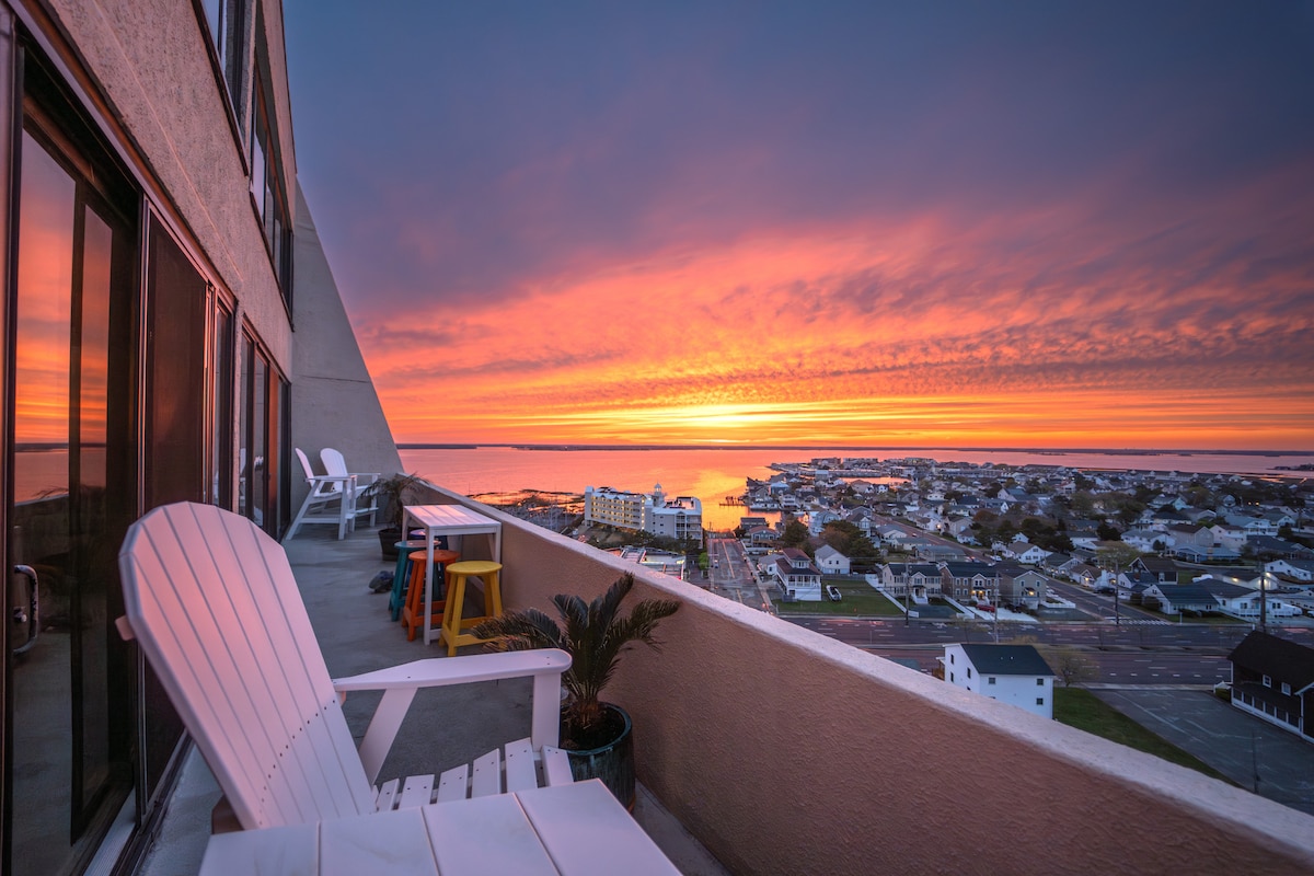 Come vacation at this direct oceanfront penthouse on 85th Street! This 3 bedroom, 3 bath two-story penthouse offers plenty of space for the entire group to stretch out and enjoy. Expansive bay and ocean views, the oversized balcony is the place you will want to be! The building offers a heated pool and is only a few small steps to the beach. For your convenience, this unit has a washer and dryer inside the property. In addition, games, beach chairs, and beach toys are available for your use!