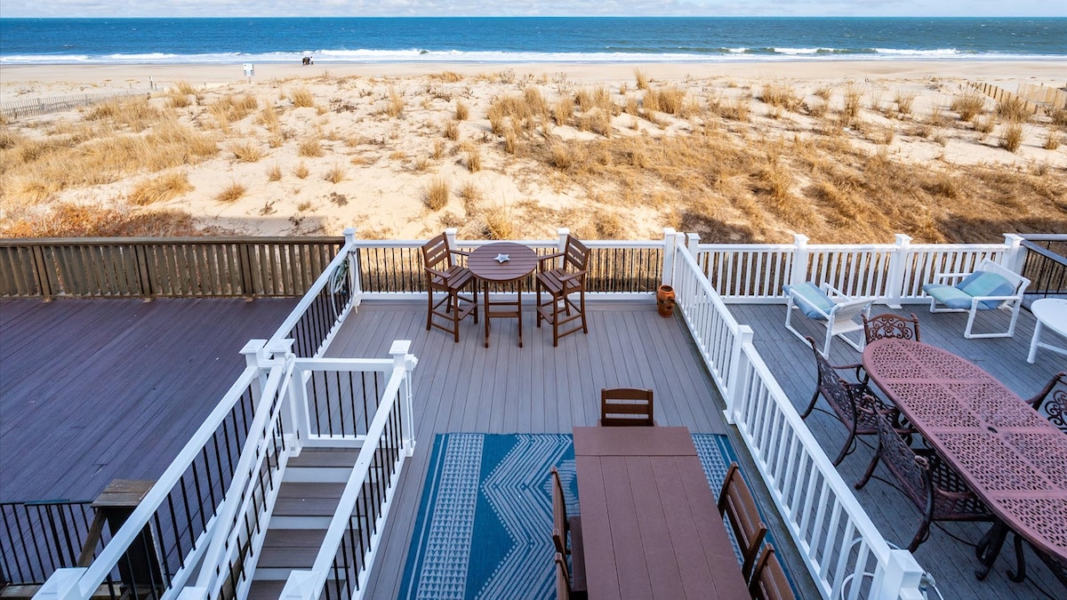 Perfect getaway to the ocean in this updated, stylish home. Elevated ocean-front, with stunning views from every room and two private balconies. Amazing location - walk to great restaurants and still enjoy a private-feeling beach with lifeguard stand just steps away. No need to 'pack' for the beach -the house is just steps away. Enjoy coffee at the granite island overlooking the beach! There is a set of stairs up to the condo, and another set of stairs up to the main bedroom.
