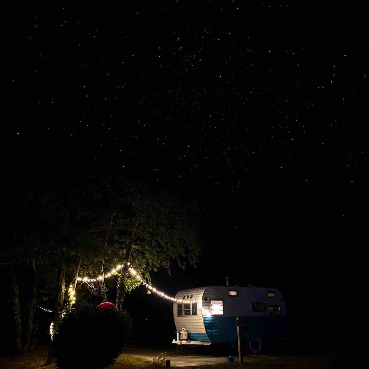 "Old Smokey" is a 1965 pull-behind camper that has been beautifully remodeled. It is cozy, rustic and has been restructured with lots of love. You can enjoy breathtaking sunrises and sunsets. The camper has both air conditioning and a wood stove. "Old Smokey" is a unique and romantic glamping experience. You can cook delicious meals on the propane stove/grill or visit one of our charming local restaurants. This is the perfect location to relax and reset, either solo or with someone special.