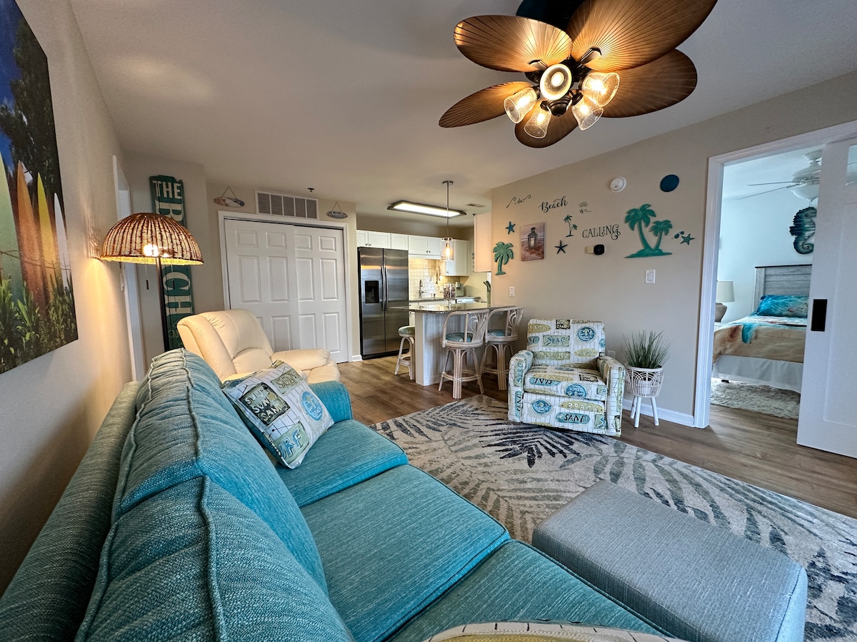 After relaxing at the beach (just a 7 min walk away), unwind on our deck "watchin' the tide rollin' away!" Get the best of the bay & the beach with this dog-friendly hidden gem! Imagine evenings enjoying the bay breeze as you crack crabs on the deck! Relax inside our open-concept great room that allows everyone to be together. Fish on our private dock or use it for your own boat or jet-ski to dock there. Witness spectacular sunsets with our Kayaks. Enjoy a well lit, private work space to virtual work w/ high speed internet! A new wood CRIB now in master suite for restful sleep! The pools and tennis/pickleball courts are only a few blocks away for your enjoyment! Plus, a truly unique OUTDOOR MOVIE EXPERIENCE for all our guests to make for the best Vacay EVER!