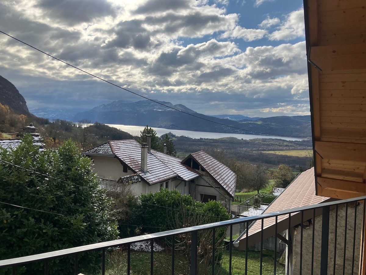 Installez vous confortablement dans notre charmant appartement neuf de 50m2 avec vue sur le lac du Bourget. A 5 min en voiture du lac et 10 min à pied du centre bourg. 1 place de parking est à votre disposition. L'appartement se trouve au milieu de la verdure, au premier étage (sans ascenseur). Vous trouverez tous les équipements de confort à disposition, grande douche, WC séparé, 1 chambre avec rangements. Vue dégagée sur les sommets environnants et sur le lac.