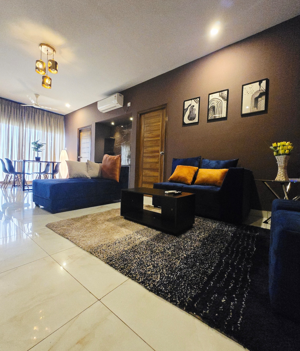 This is a brand new generous bed room that can accommodate easily more than four people, this place come with extra queen size mattress and sofa bed in the lounge for your extra people comfort, room is fully air conditioned and maintained that comes with spacious bathroom, the property situated on second floor over looking freshwater lake gives you beautiful water views, it’s located around 6 kms within city corporation limit and easy to access from all major roads, all facilities are nearby
