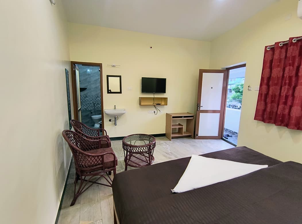 Nestled conveniently along the main Dindigul Trichy Highway & around the corners of all famous biryani cuisines of the Biriyani City. A thoughtfully designed Studio Room located on the 2nd floor (no lift) offers a perfect blend of chic comfort & coziness for weary travelers & families alike with a/c bedroom with a private restroom, a kitchenette & parking. Relax, unwind and experience the warmth of Shrivi Abode! Relax at this peaceful place to stay. P.S.- No lift to 2nd floor