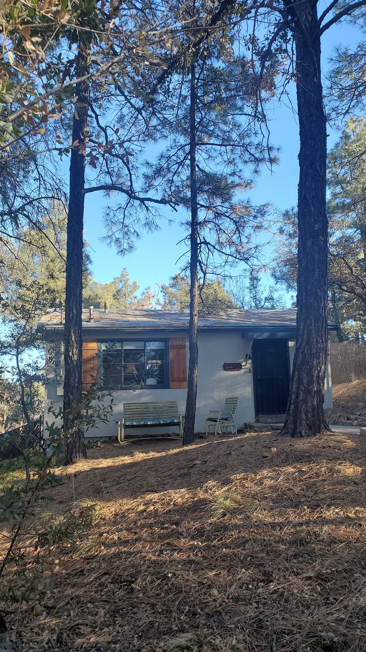 Relax with the whole family at this peaceful cottage in the tall pines of the Prescott National Forest. Fully equipped eat in kitchen with seating for 6. 2 bedrooms with queen beds and TV's and a queen sofa sleeper. For adventurers, you are only minutes away from endless activities. Goldwater lake and it's many trails are less than a mile south. Head 3 miles north to discover endless shopping, the courthouse square, and historic Whiskey Row. Bucky's Casino is also a short drive away.