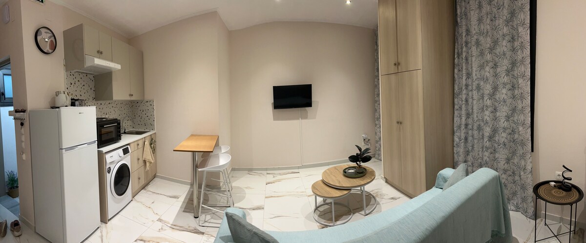 A private rooftop escape in the heart of Chios town! This modern studio apartment offers a peaceful stay with a stunning panoramic view of the Aegean Sea. It's highlight? A huge private terrace with lounge chairs, dining table, and breathtaking views of the sea and sunrise. Ideal for solo travelers, couples or digital nomads looking for comfort, calm, and convenience – all just steps away from cafes, shops, and the port.