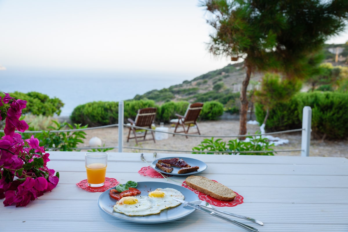 Hello there! We are offering for rental our holiday home in the Southern tip of Chios Island. It is a perfect spot to relax and enjoy the amazing view of the Aegean sea. The tiny islet of Venetico in the background with it's lighthouse on it which blinks as it gets darker, seems to change colour during the day. Then you can enjoy a sky full of stars far from the light pollution of a city.