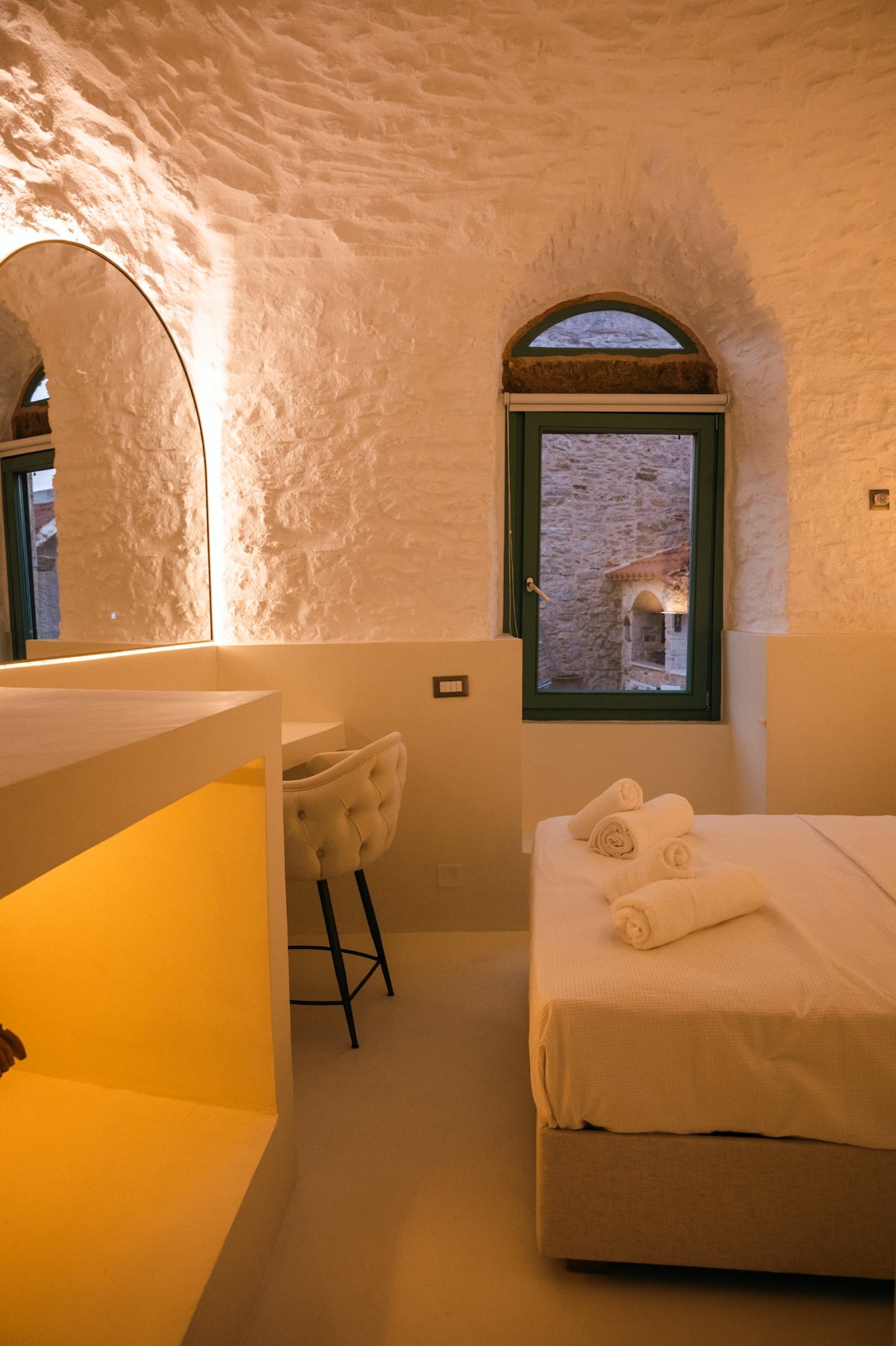 Traditional house in Patrika one of the medieval villages of south chios specialy constructed for the collection of the mastic.Dating back to medieval times, fully renovated in 2018 with respect to the traditional architecture. Special attention was given to the decoration, to the luxury and the comfort. Built in two levels, it contains 2 spacious bedrooms, a kitchen, a bathroom, an attic with double bed, a terrace with view to the sea and the mountains, and a balcony to the village square.