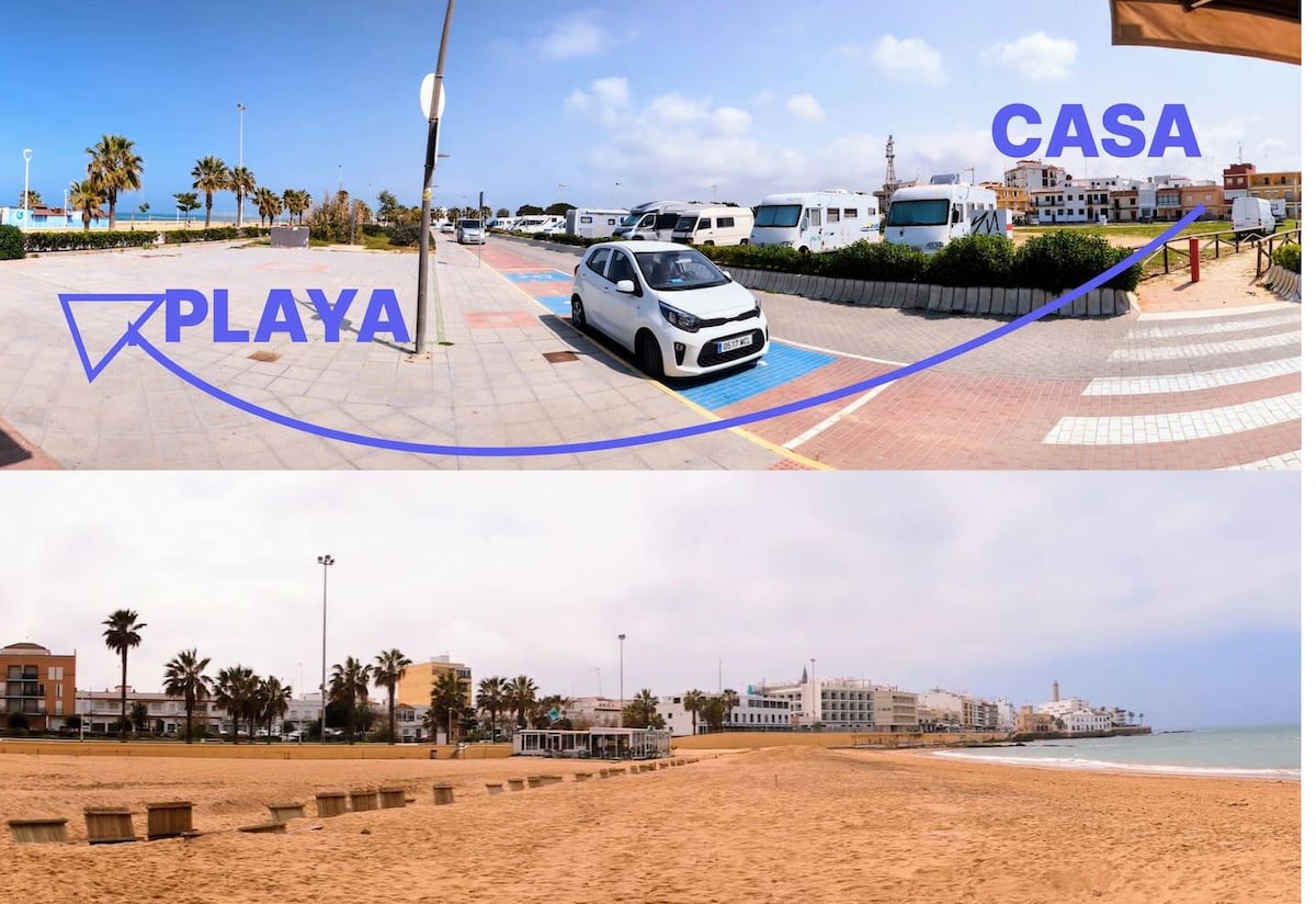 Rustic house right on the sand of the beach located on the suburbs of Rota norte, between El Puerto de Santa Maria and Chipiona. You will have the sea just a few seconds away and the sand at your feet, and will hear the sound of the waves from the bed. Costa de la Luz is known for it's amazing sunsets. Each day they have an unique and special light. It is located in a quiet area, just a few minutes away by car from Rota norte and Costa Ballena. It is essential to bring your own vehicle.