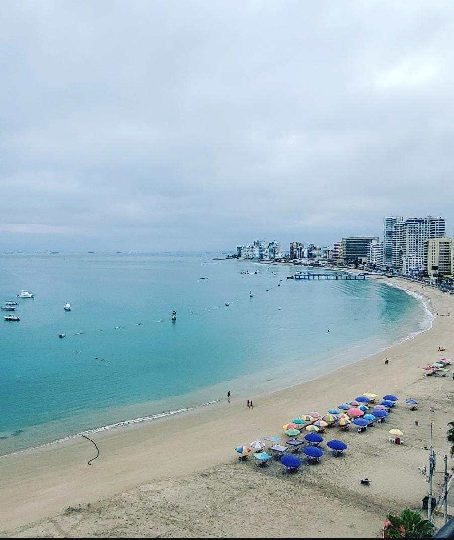 Beautiful spacious apartment in front of the beach. Wonderful ocean view. Located at Malecon Principal of Salinas, close to bars and restaurants. You can enjoy the sea with multiple activities such as swim, waverunner, boat ride, water parks and water sports. Reservations over 28 years old... PARTIES PROHIBITED
