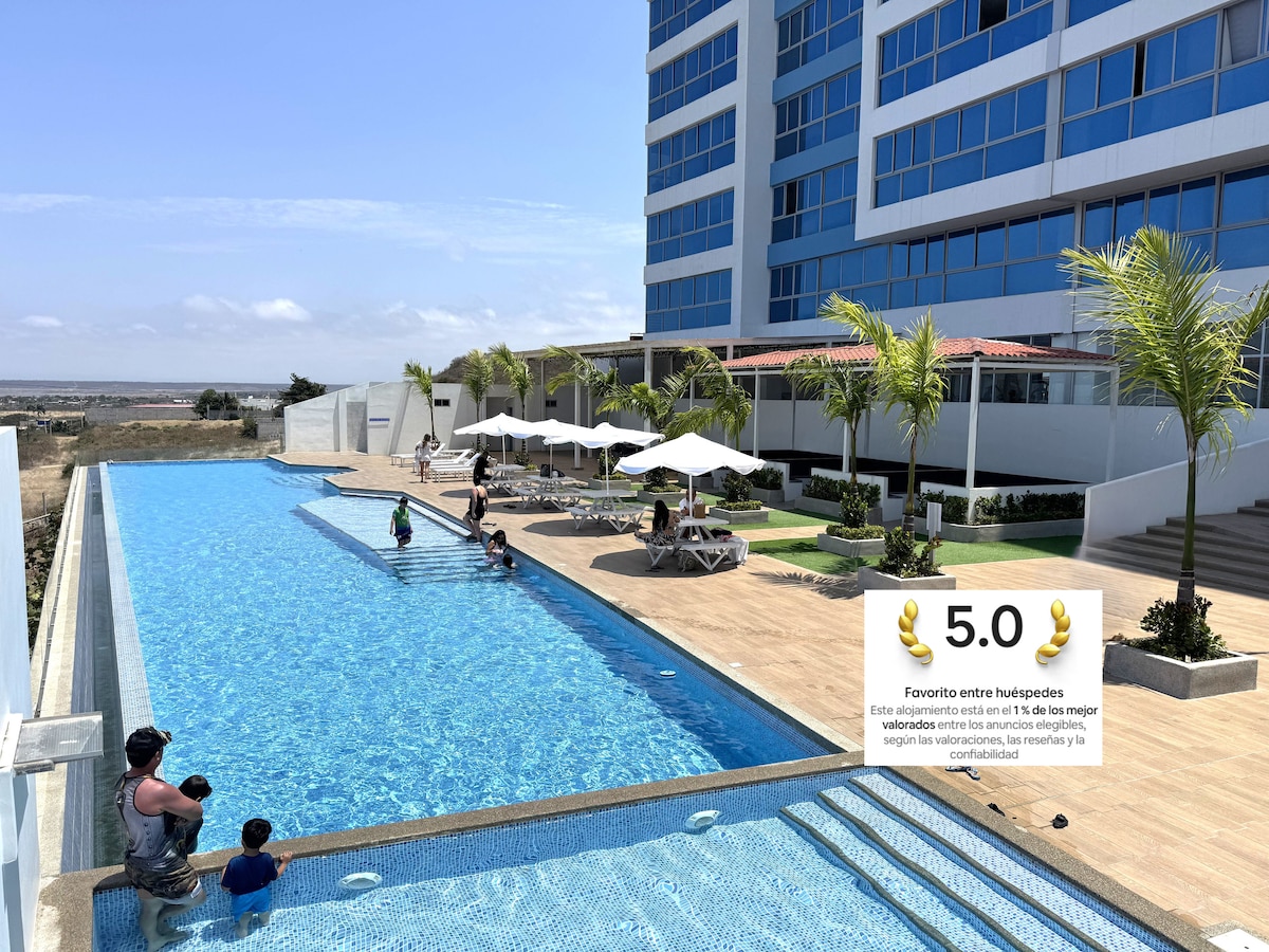 沙利纳斯(Salinas)海滨海景+泳池家庭公寓