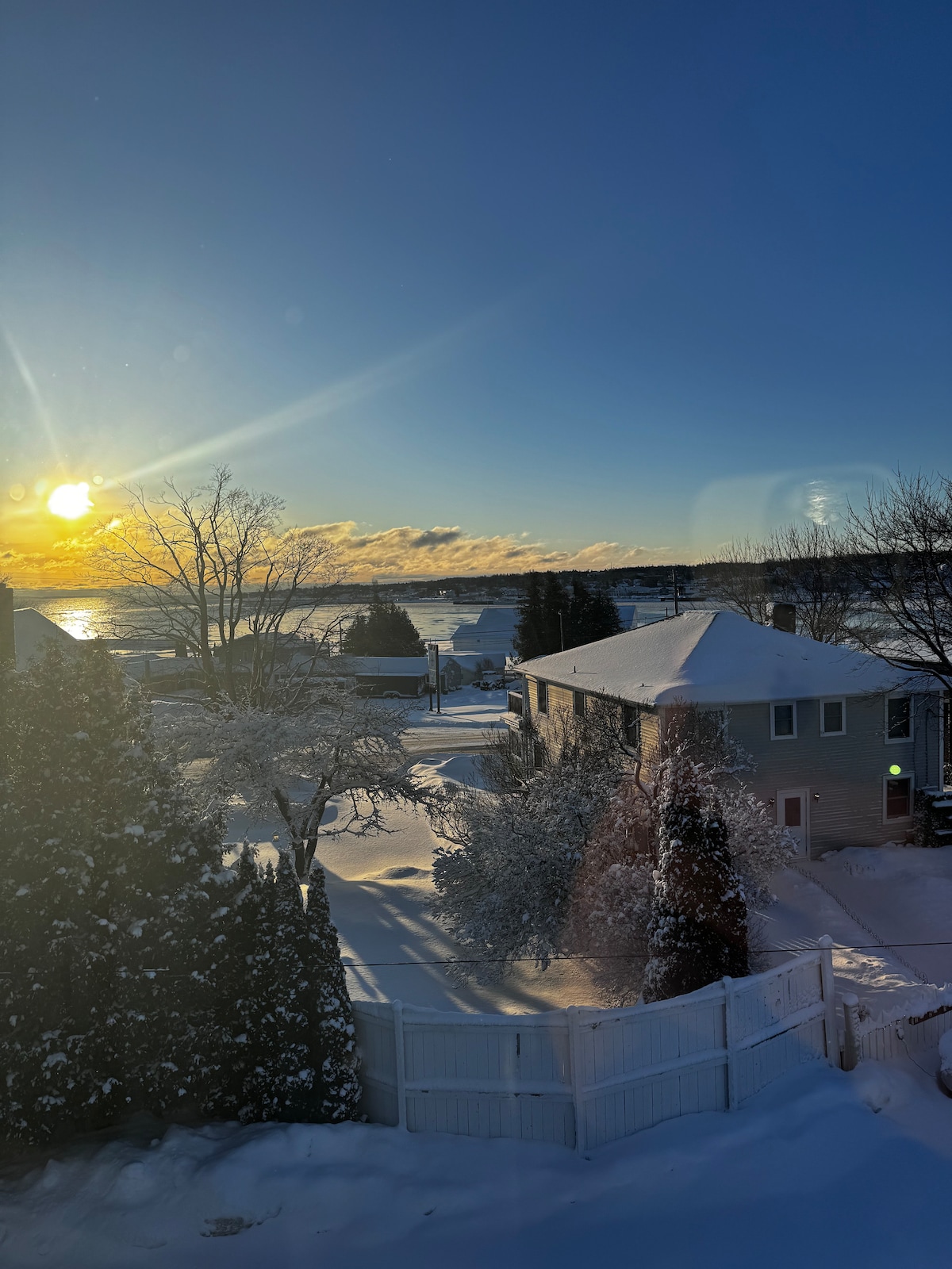 Centrally located, downtown, 800 sq. ft. heated solarium suite - bedroom, living room, small bathroom and kitchenette (toaster oven, microwave, electric frypan, mini fridge - not a full kitchen) and sleeper couch, attached to the back of my home. Private entrance out back, winter access thru the garage. Laundry facilities in the garage. Driveway parking. Well behaved dogs are welcome - see rules. Fenced backyard with fire pit. Solarium is full of plants. Beautiful front water view plus gardens.