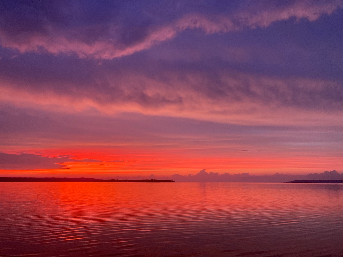 Welcome to Whit’s End on beautiful Drummond Island! We are excited to share our boathouse with you here in the historic Whitney Bay area. Enjoy your morning coffee on the deck listening to the Loons and watching nearby freighters navigate Lake Huron. The sunsets over Whitney Bay are truly spectacular. The living space is located on the second floor of our renovated boathouse. We run a small pottery shop on the main level, so you may notice occasional activity during the day.