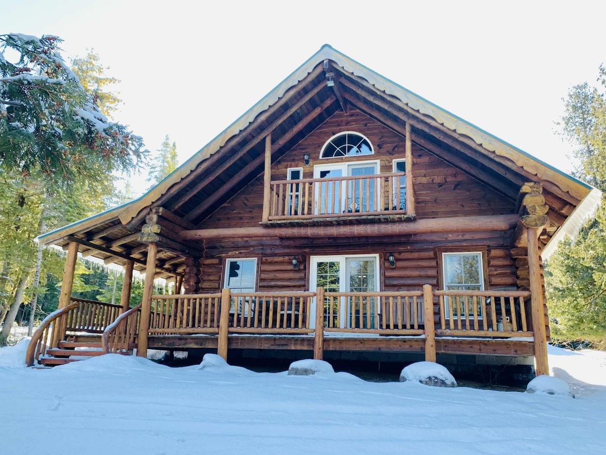 Beautiful and very spacious log home across the road from Lake Superior and a five minute walk to Monocle Lake in a quiet neighborhood with access to biking, walking, running, ATV, and snowmobile trails. Sleeps 11 with room for 15. Basement includes game room with pool and ping pong plus more. Indoor sauna. Outdoor jacuzzi and Solo smokeless bonfire pit. Covered and screened-in porch with plenty of seating to enjoy a peaceful setting.