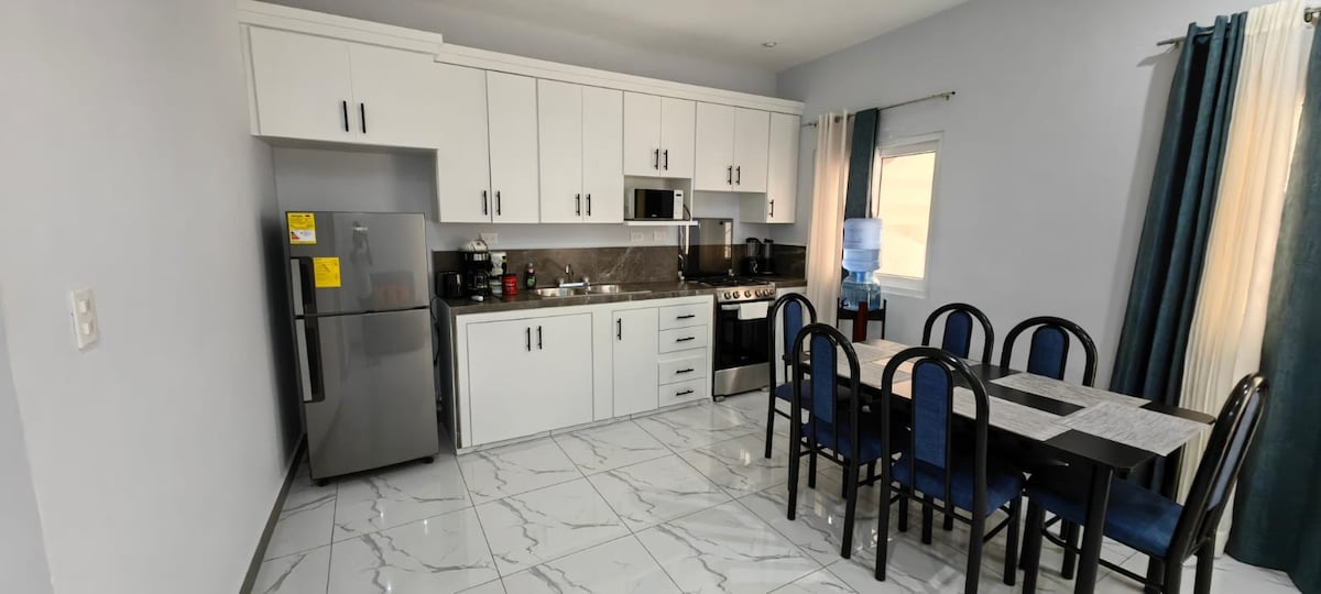 Precioso y moderno apartamento en el corazón de Esquipulas, recién renovado. Perfecto para 8 personas. Ubicado en zona residencial, es muy seguro para salir a caminar con la familia, con tiendas de necesidad básica dentro de la colonia. A 4 minutos caminado del Súpermercado y a 10 minutos de la Basílica. El apartamento cuenta con: dos habitacion con 2 camas matrimoniales, sus baños closet y escritorio de estudio independientes. A/C Sala Comedor Cocina completa Jardin Parqueo privado