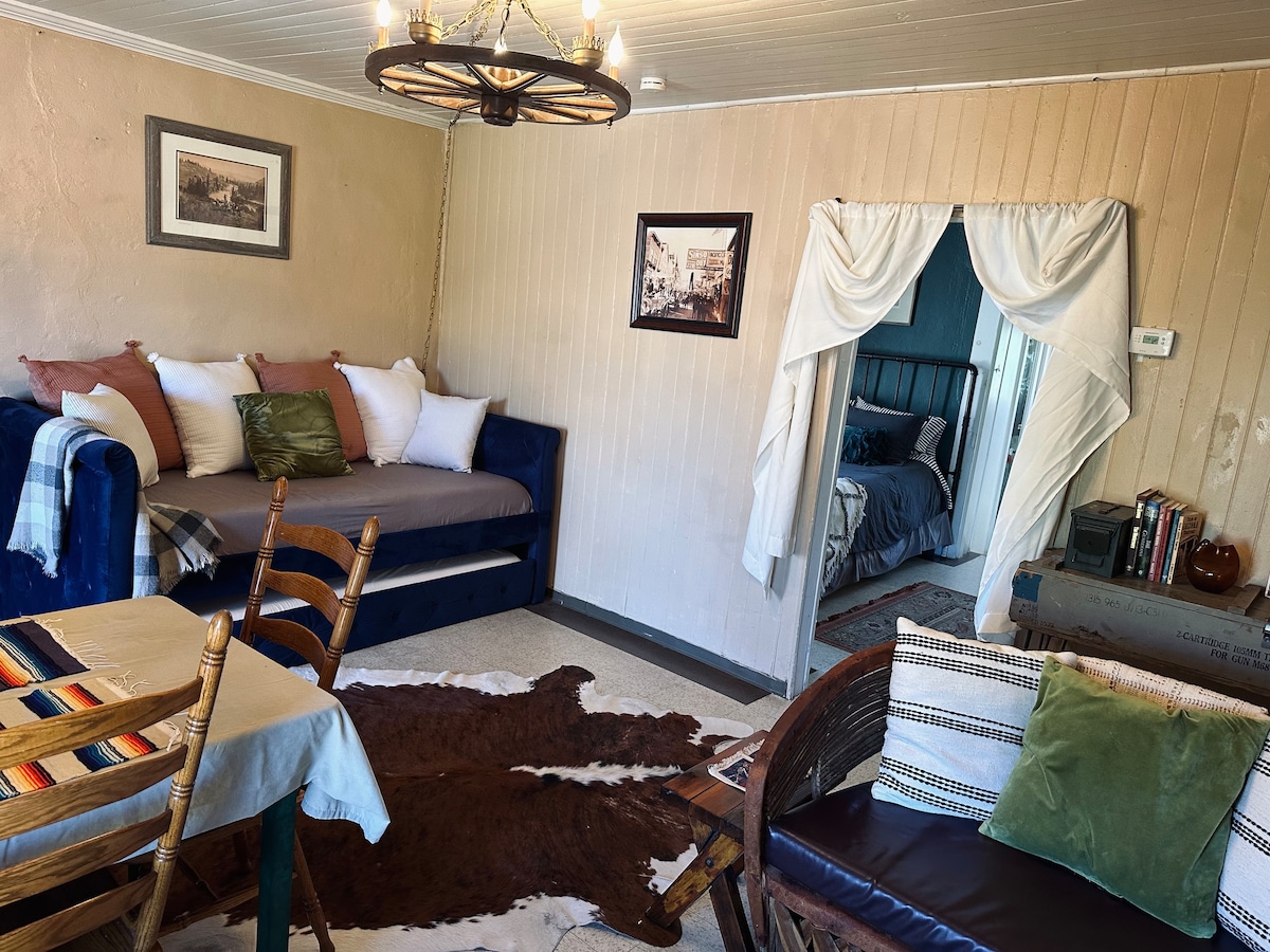 Our original to the town adobe style miner's cabin, built in the 1880s, will take you back in time with its scenic mountain views and breathtaking night sky. The interior of the cabin has been carefully restored using a historic color palate, craftsman-style furniture, antiques and decor. Situated just a block away from Tombstone Brewery and only two blocks from historic Allen Street - walk to the best Tombstone shopping, saloons and attractions, then kick back on our porch and relax.