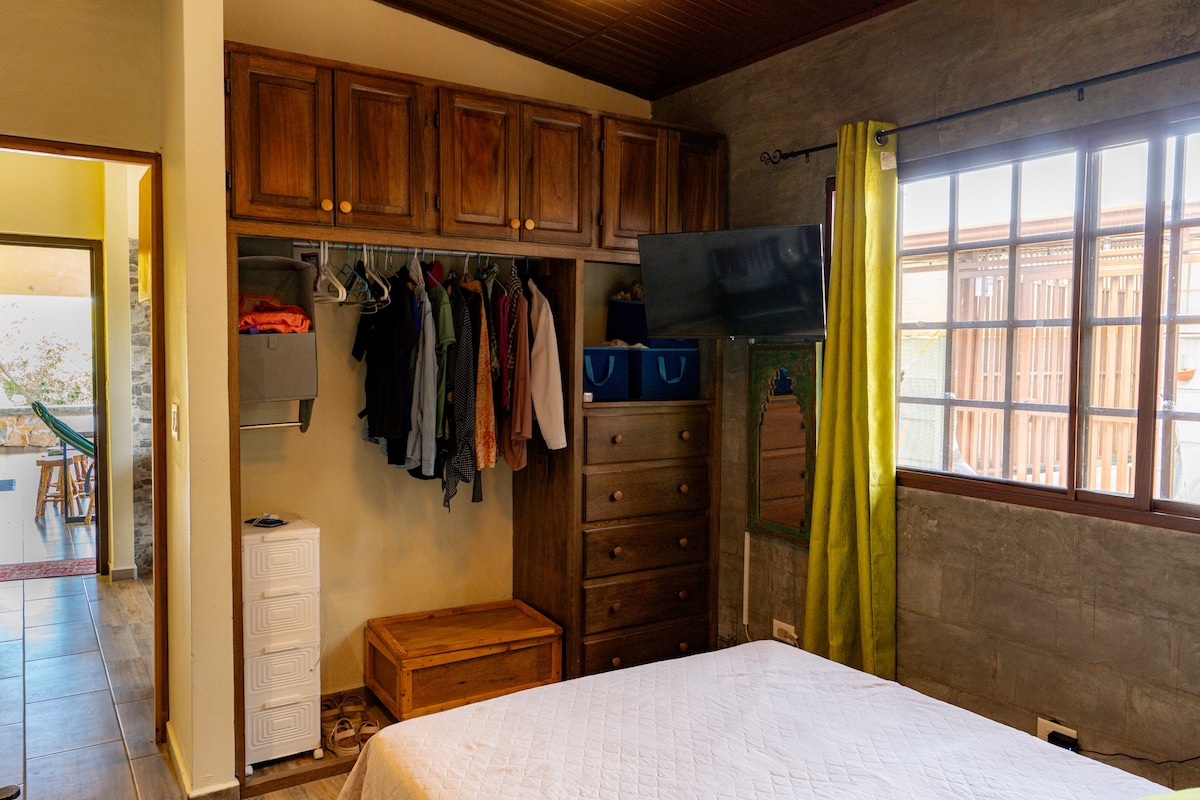 Enjoy the simplicity of this quiet and central accommodation in Bajo Boquete, just a few steps from supermarkets, restaurants, bars, cafes, with easy access. This accommodation has large spaces, high ceilings, has a comfortable bed, a completely renovated private bathroom, has access to a perfectly equipped kitchen, and also has a large garden with chairs and tables.
