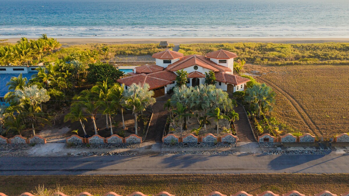 Contemporary on the beach Villa with 180° Panoramic Ocean & island views of the Gulf of Chiriqui National Park. Open concept, indoor/outdoor living with private pool & spacious terraces for lounging, sunsets & stargazing. Perched on a cliff with direct beach access. Ocean breezes, tropical birds, exotic monkeys, iguanas & dolphins in the Bay. Private gated community. Large sand beach, perfect for swimming, boogie boarding, long walks, bocce ball or just relaxing & enjoying the sounds of nature.