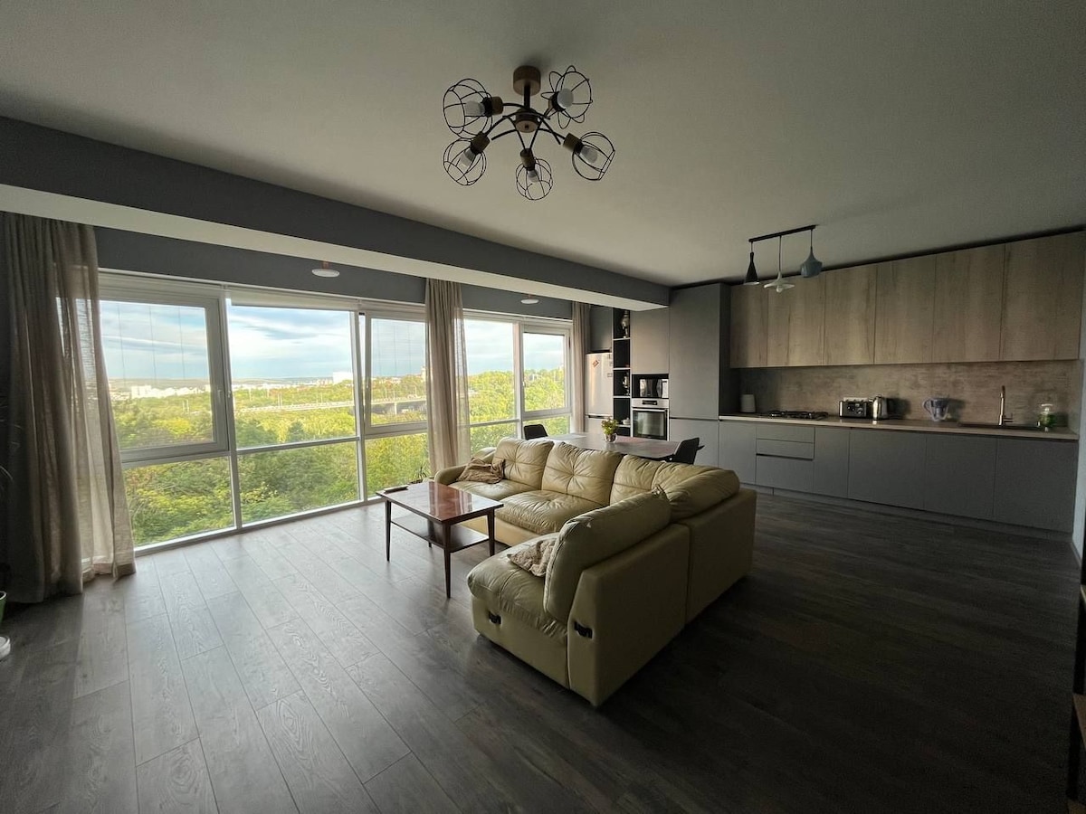 The apartment have an amazing panoramic view to the park, in here you will find always clean and nice atmosphere. Inside we have all the acomodation for you staying, wash machine, fridge, clima, TV,bed lengery, towels, as well all what you need for cooking. The flat is located in the central part of the city, near Kaufland, Shoping Malldova,direct public transport to the aeroport.