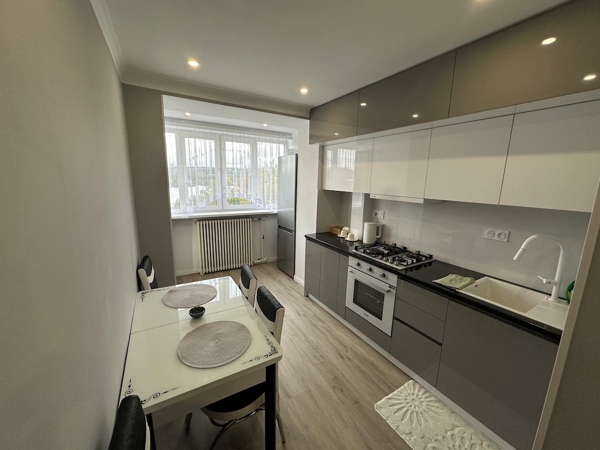 Cazare elegantă, stil neoclasic, spațioasă 98 m2, într-un bloc nou,zona rezidențială liniștită lângă parc (amenajat cu locuri de plajă,sport și recreere pentru copii și maturi).La 5 minute de mers pe jos de Shopping Mall ( Bănci, Market, Restaurante, McDonald's, Cafenele, Cinematograf, Bowling) si la 1,5 km de centrul orașului. Transportul public este usor accesibil. Bucatarie complet dotată, 2TVsmart, Netflix, WiFi Curățenia locuinței și confortul clienților este prioritatea noasta