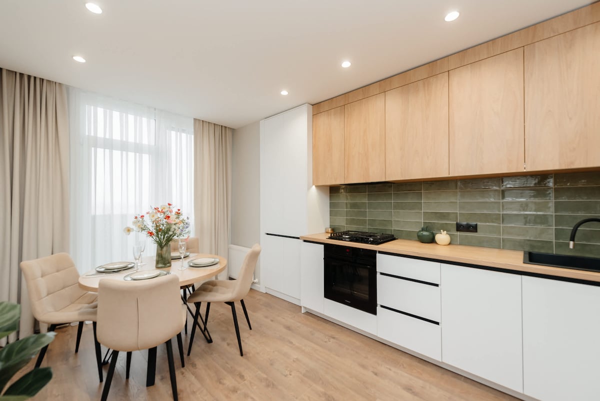 Bright 1BR GrandStay apartment on the 8th floor with elevator access. Open-plan living, kitchen & dining with sofa-bed for extra guests. Stunning balcony view overlooking Botanica sector and Rouse Valley Park. Fully equipped: two Smart TVs (bedroom+kitchen), 1000Mb/s Wi-Fi, coffee&tea station with candy/milk/sugar, washer&dryer, dishwasher tablets, and all essentials. Heating & AC via thermostat. Perfect for couples or families.