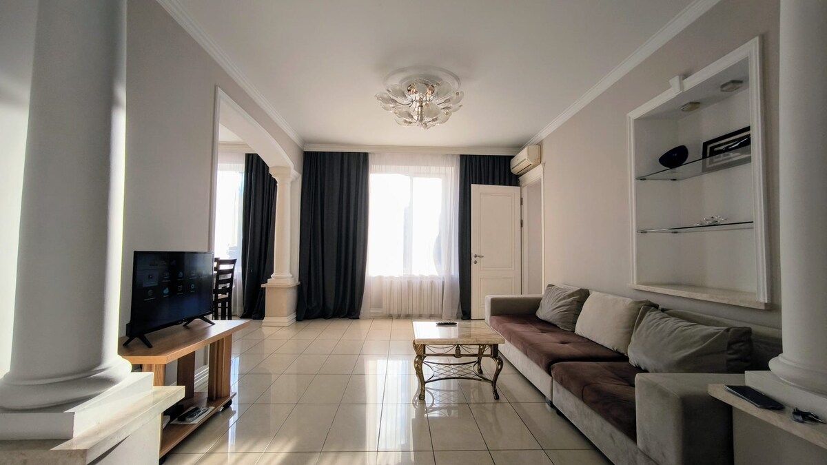●BRIGHT, spacious apartment with AIRCON ●UNBEATABLE location in the CENTRAL STREET -You cannot find better location for your accommodation, I promise! :) ●60 square meter apartment ● SEPARATE BEDROOM ●FULLY-Equipped kitchen ●SAFE and TRADITIONAL Building and District ●2nd floor ●SECURED Garage:3 min🚗 ●View Mihai Eminescu square ●CENTRAL PARK:3 mins ●AIRPORT ELECTROBUS (30A) stop: 2mins✈️ ●REAL vibe of CHISINAU-be part of it!