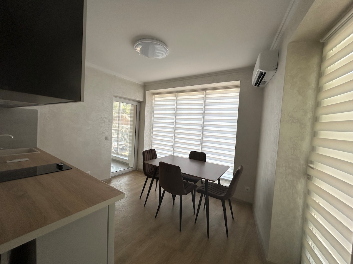 Discover a stunning modern 1-bedroom apartment in the heart of Chișinău! Located on the 12th floor, it offers breathtaking city views and is steps away from a shopping mall and park. Recently renovated and fully furnished, this brand-new space is perfect for your stay. Enjoy stylish interiors, a cozy atmosphere, and convenient access to everything the city has to offer. Book your perfect getaway now!