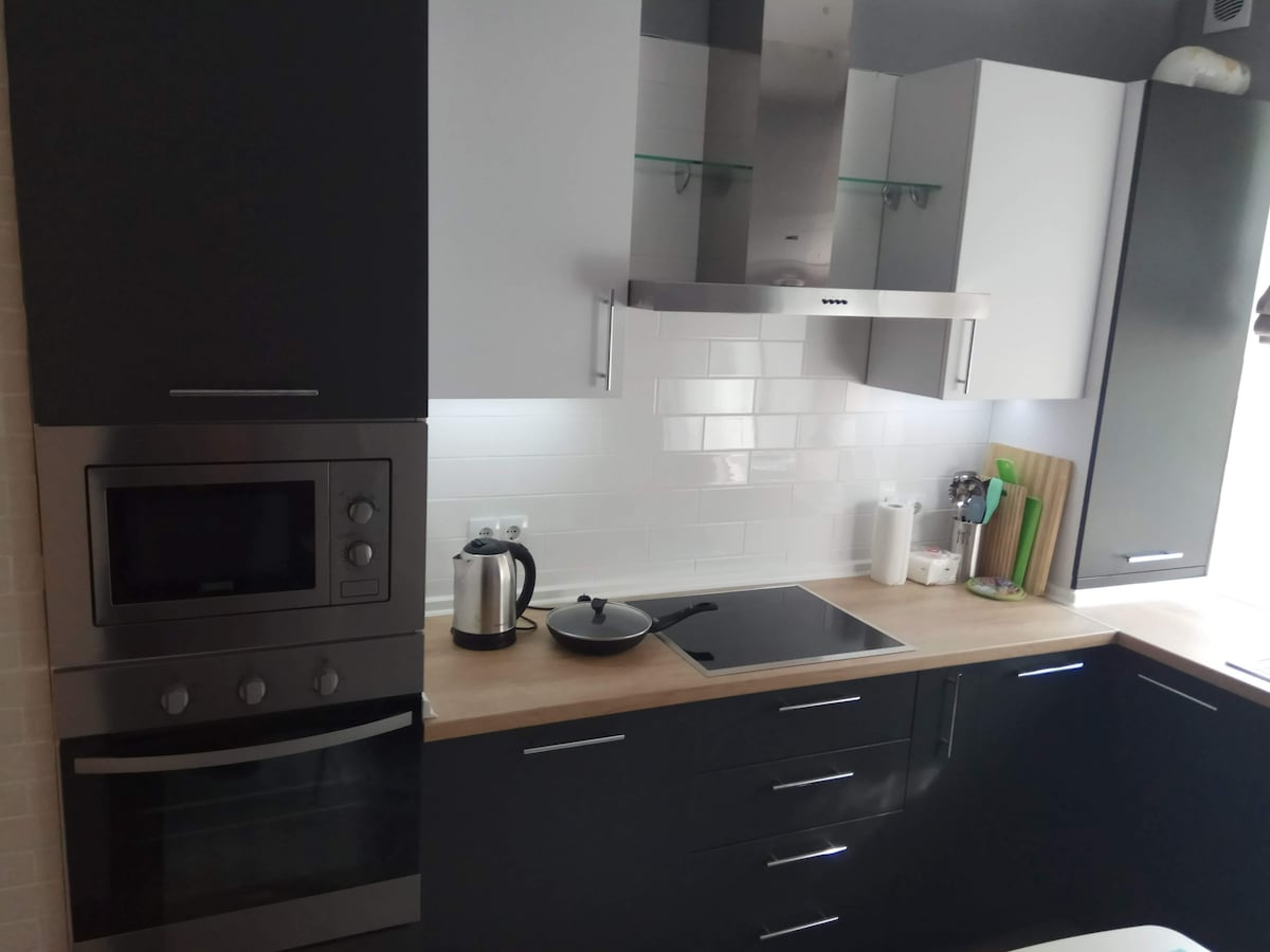 Dear travellers, We would be glad to meet and host good people. There could live up to 3 people (1 king size bed with extending orthopedic matrass + 1 sofa-chair) From the airport there are 3 ways go get to our apartment. 1) to take a taxi (~5 USD, about 30-40 min drive) 2) take minibus 165 and get another minibus (PHONE NUMBER HIDDEN) from city center (cost less than 1 USD) 3) I can meet you in case not too busy day @ work.