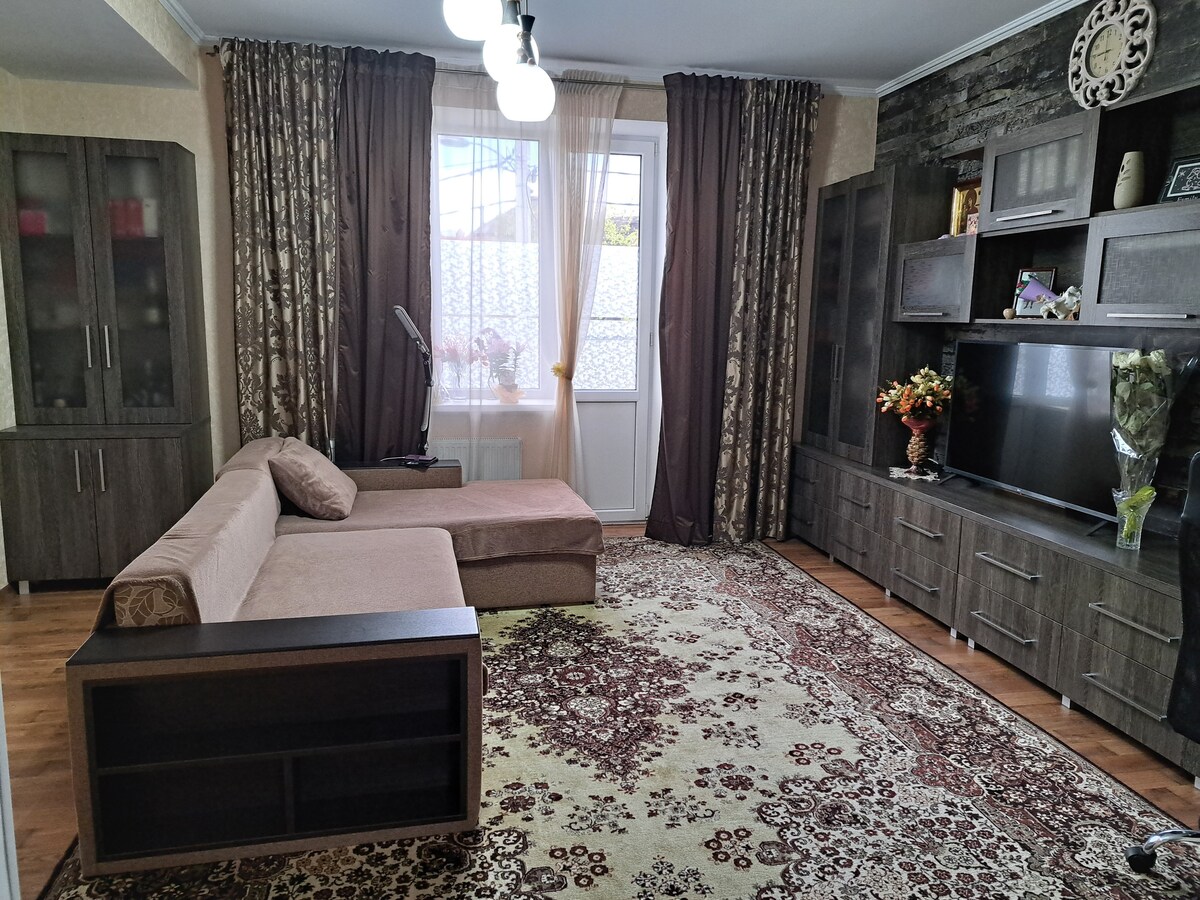 Apartment located in Chisinau 3.8km from the Center. bettewhen 2 parks, 1 minute far away from Alunelul parc and 4 minutes from Dendrarium. The apartment is equipped with 1 bedroom, 1 dinning room (with extensible sofa, i can host till 3 guests), 1 bathroom, bed linen, towels, soap, shampoo, washing machine. 2 flat-screen TVs(160 chanels), Wi Fi, a fully equipped kitchen, balcony, wardrobe. **if parking needed for an extra fee we could provide garage in basement