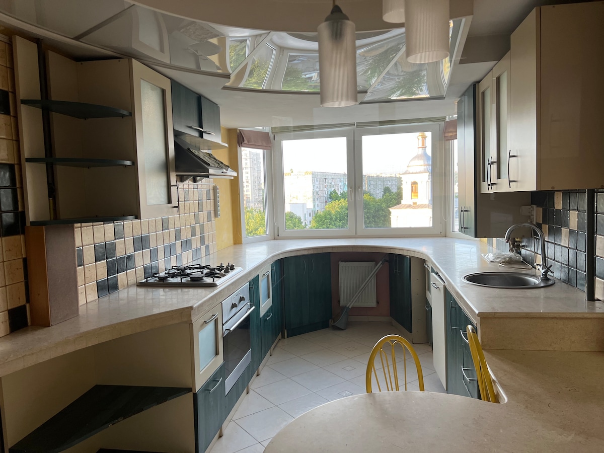 Your family will be close to everything when you stay at this centrally-located place. This apartment offer you an Oasis of peace in the downtown Chisinau. Last floor of a few units building. The air condition in the apartment will make your stay cool, summer time , enjoying the city panoramic view. The fireplace will create a special atmosphere during the winter. An extra bed is available. The parking is free and 24/7 security. This apartment is unique as design and location. Clean and cozy.