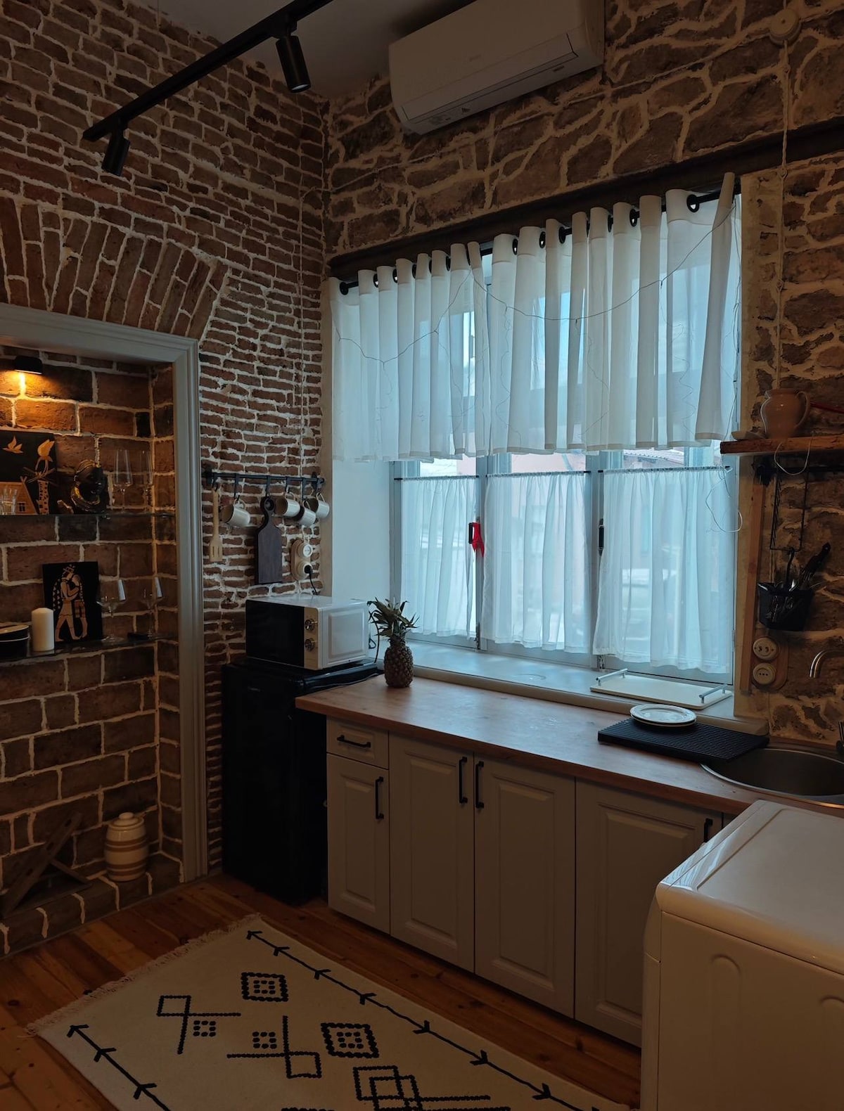 The apartment is located in the heart of the city. It features a washing machine and dryer, a dishwasher, a microwave, an oven, and a coffee machine for your convenience. For your comfort, there is a TV and air conditioning, as well as an electric fireplace for cool evenings. You will also have access to a small green yard with a barbeque. It is just a 15-minute walk from the Central Market and the Triumphal Arch. Nearby, are shops, restaurants, and bars. The bus stop is just a 2-minute walk.