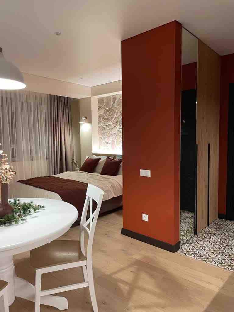 Современные апартаменты с уютной атмосферой | Рышкановка, Кишинёв Насладитесь проживанием в стильных и светлых апартаментах, расположенных в спокойном районе Рышкановки, всего в нескольких минутах от центра города. Интерьер выполнен в тёплых тонах с элементами минимализма — идеально подходит для отдыха или удалённой работы.