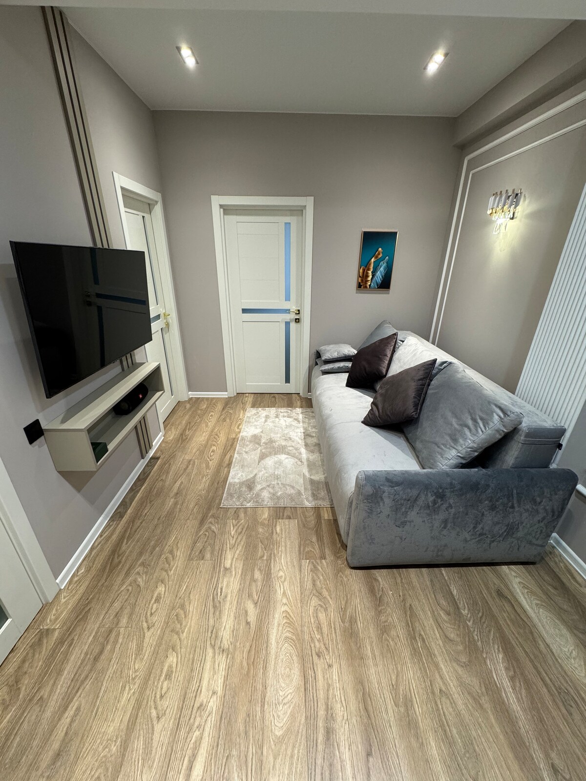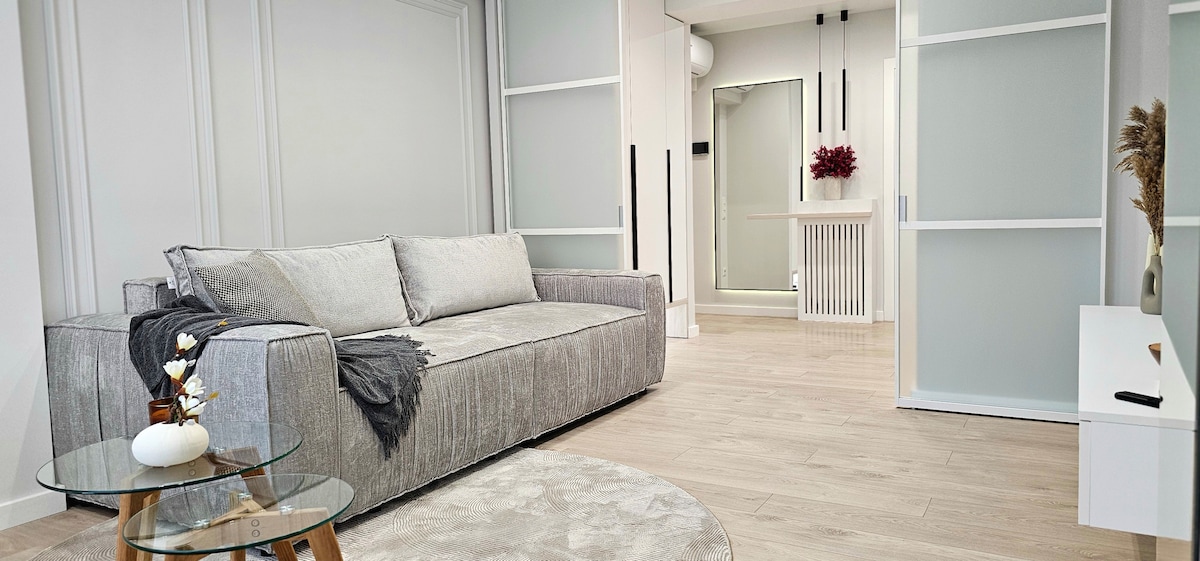 Enjoy a stylish experience at this centrally-located place. Brand new apartment located right on Stefan cel Mare street, in front of Ministry of Internal Affairs. Fully equipped for your comfort and styled in minimalist design, it will make you feel like home. It is at the 2nd floor, all windows are facing the main street, displaying a beautiful and pleasant city view, meanwhile offering the maximum noise reduction with our blackout electrical blinds and triple glass windows.