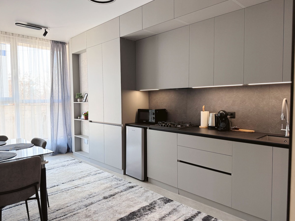 Descoperă confortul și eleganța într-un apartament modern, ideal atât pentru sejururi scurte, cât și pentru șederi prelungite. Amplasarea excelentă îți oferă acces rapid la principalele atracții turistice, restaurante și zone de divertisment, fiind alegerea perfectă. Designul deosebit, crează o atmosferă relaxantă și primitoare. Fie că ești în călătorie de afaceri sau în vacanță, apartamentul este dotat cu toate facilitățile necesare pentru a-ți asigura confortul dorit.