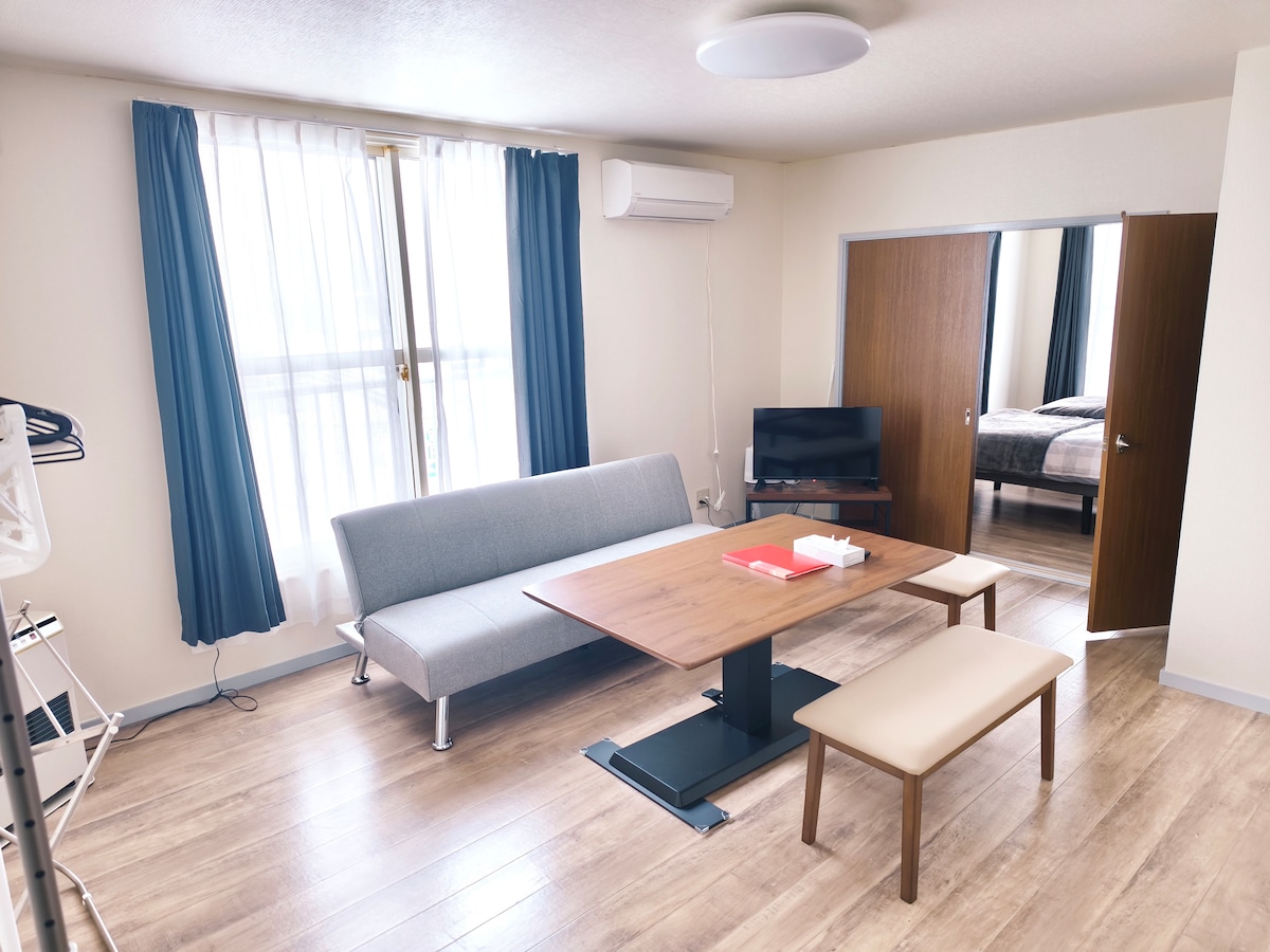 Non smoking unit. Fully furnished apartment located city center with 2 single beds, sofa-bed, private kitchen, bathroom, washlet toilet. The apartment is located on a hill. If walking is difficult for you, please consider not booking. The main purpose of staying: 🚗 free pick up at JR Otaru station! 👡🦶6 min walk to main street Sakaimachidori 👠🦶5 min walk to LAWSON 🥾🦶15 min walk to Otaru Canal ⚡️fast Wi-FI 🅿️ free 1 lot parking 🥘 nice kitchen