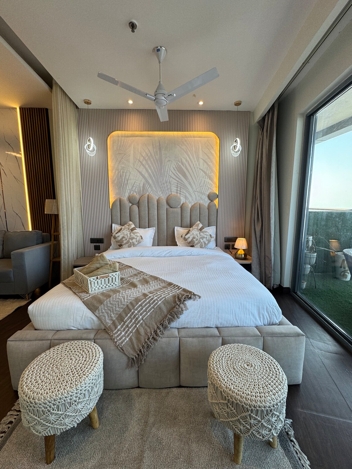 Welcome to Sadharan Homestays! Our private studio apartment in Kailash Hills offers a luxurious stay, perfect for peaceful family & friendly stays. Loud parties are not allowed. Located on the 4th floor without lift, our 24/7 staff assists with luggage & more. Cook like a pro in fully equipped kitchen, or grab groceries & call our cook for homely meals. Get a therapeutic shower experience with rain, waterfall, column, mist and steam therapy. Save 18% on business bookings with GST invoice!