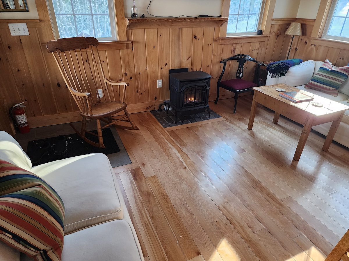 Cozy barn, gas fireplace, fast WiFI in a peaceful wooded forest. Whether sipping coffee by the fire, spinning vinyl records or stargazing by the fire pit(wood provided), this is your space to disconnect or work remotely in comfort. Explore on-site hiking trails, snowshoe and spot wildlife. A short drive from breweries, restaurants, scenic hikes & towns. A perfect mix of seclusion & convenience, 35 mins to Burlington. Perfect for couples/solo travelers/anyone looking for a private nature escape.