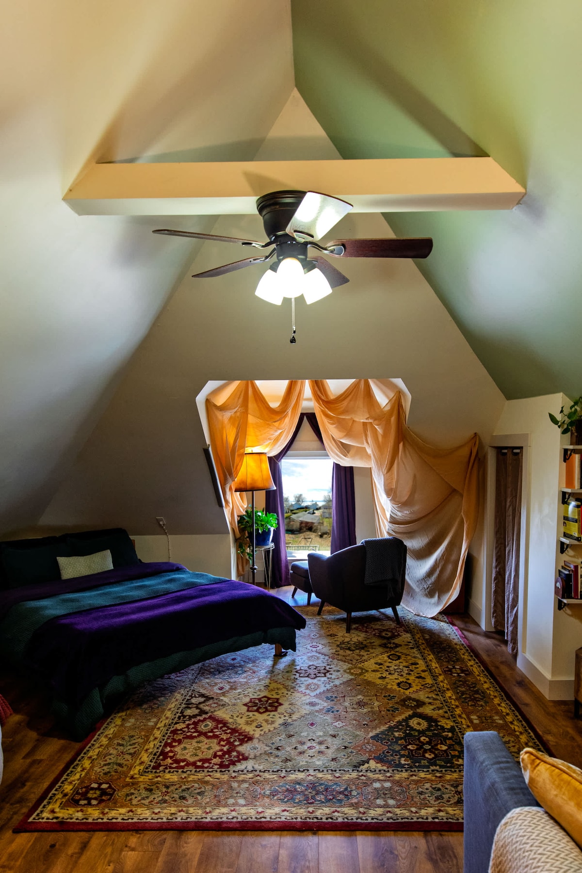 Escape to a haven of natural beauty and tranquility at The Spring Hill House. Our unique bow roof home offers breathtaking views of Camel’s Hump and the majestic Green Mountains, the perfect setting for a rejuvenating getaway. Despite being removed from the hustle and bustle of city life, The Spring Hill House is still centrally located, providing easy access to some of Vermont's most popular destinations. Please note: We have a firm no kids policy due to the open loft and stairs.