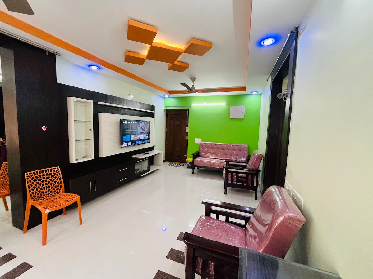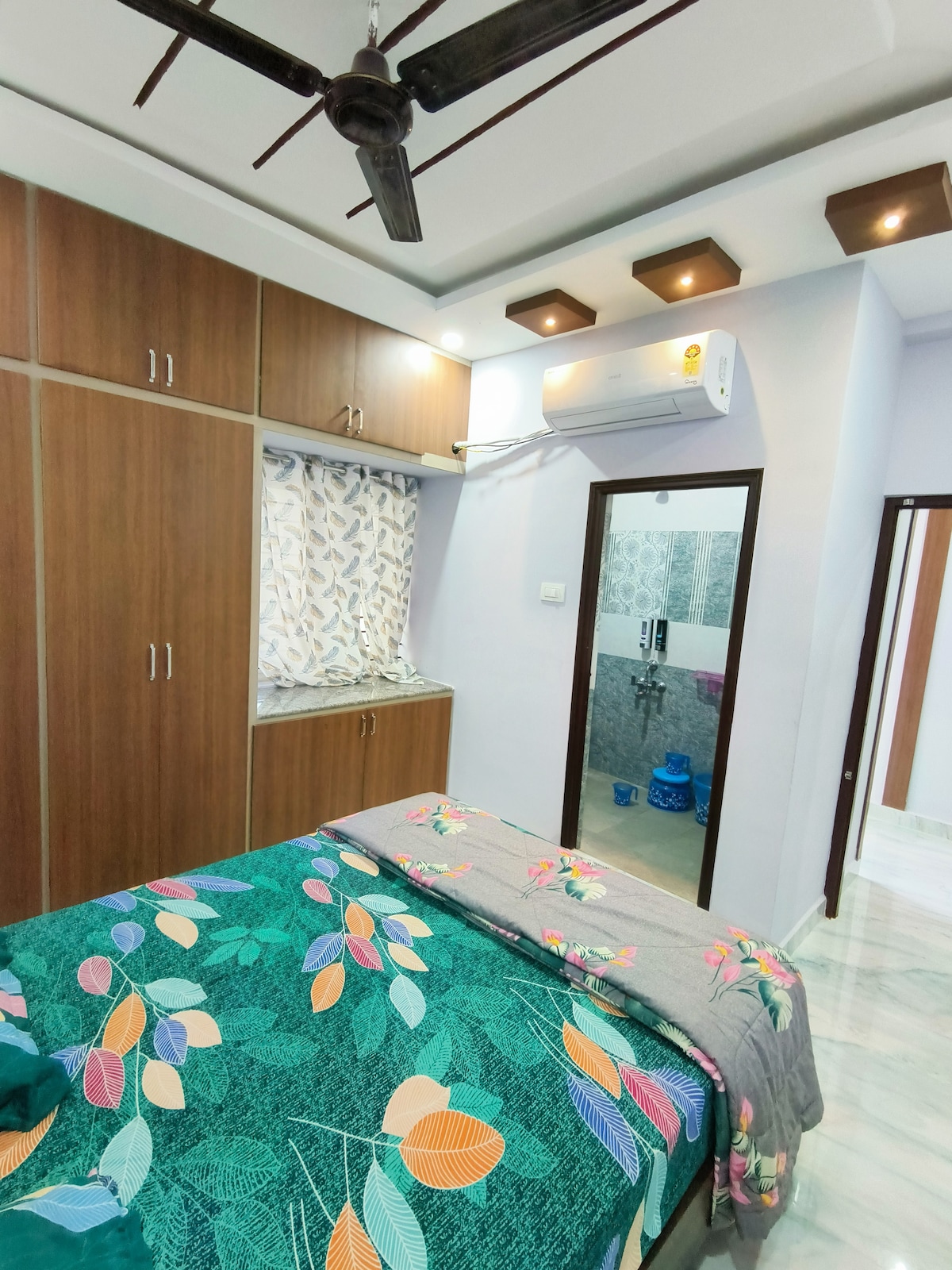 This is a spacious and well-furnished 3-bedroom apartment designed for a comfortable stay for families and groups. The home is thoughtfully equipped with modern amenities, ample ventilation, and everything you need for a relaxing experience in Tirupati.