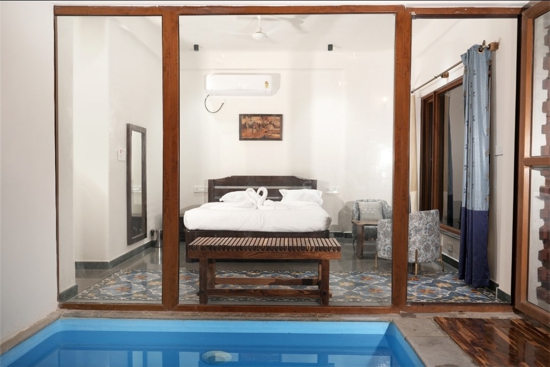 Escape the monotonous city life and rejuvenate yourself at this rustic gem nestled near Kolar. Every corner of this earthen home has been meticulously designed and given detailed attention to ensure it takes your breath away upon first sight. Surrounded by vast grasslands and open skies, this property is conveniently located near the highway, only an hour's drive from Bangalore city.