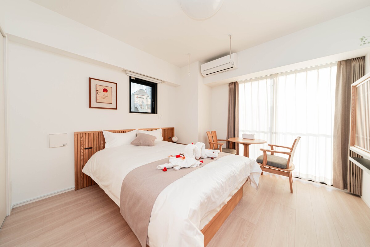 仰望晴空塔,毗邻浅草寺,日式风格体验江户风情。浅草站接送可(101室)