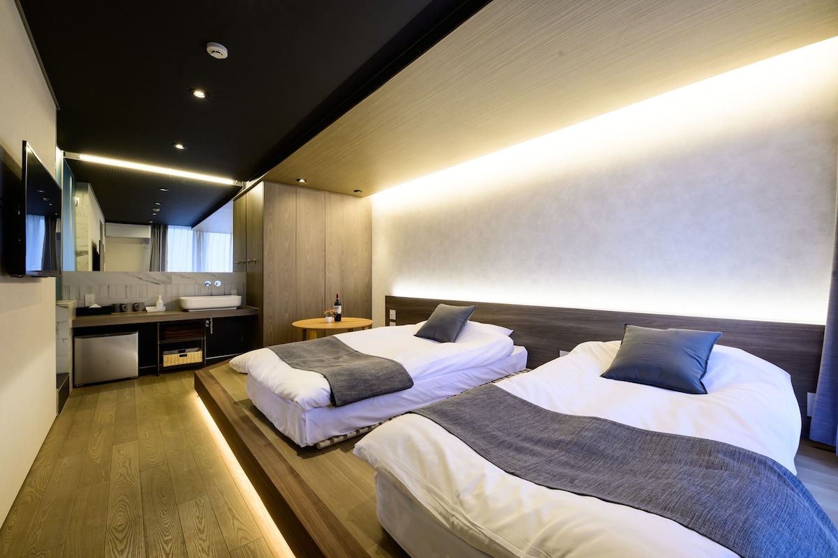 A stylish, modern condo-style hotel opened in May 2025, located in the heart of Akihabara. Just a few minutes’ walk from both Suehirocho and Akihabara stations, with convenience stores and restaurants nearby. Surrounded by figure shops, electronics stores, maid cafés, and real-life Mario Kart rides—plus custom car gatherings on weekends. Still, the street is quiet at night for a restful sleep. 25㎡ studio 1 bunk bed + 1 single foldable bed Smart TV Fully equipped kitchen In-room washer-dryer