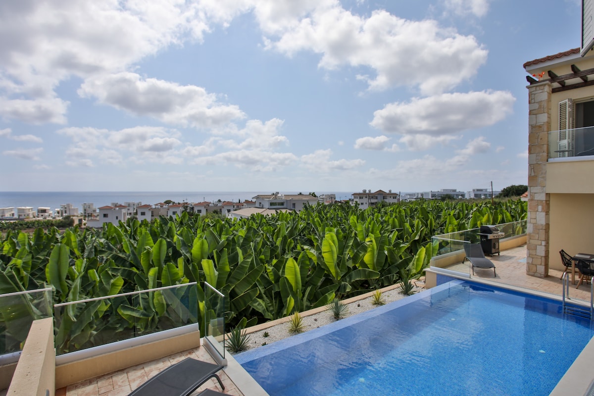 *Beautiful Villa with Infinity Pool and Coastal Views in Chloraka, Paphos* Escape to our luxurious, newly built villa at Greenvale Villas, finished in 2024 with a sleek modern concrete design. Situated in the serene and scenic area of Chloraka, near Paphos, this detached villa provides top-tier comfort and a captivating view of the Mediterranean Sea, just 900 meters away. Indulge in peaceful surroundings, state-of-the-art amenities, and spectacular sea views for a perfect holiday.