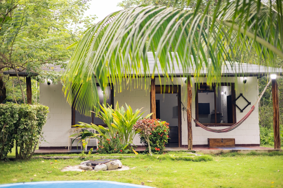 Cabaña ubicada frente al mar, rodeada por un amplio jardín. La cabaña cuenta con un solo espacio en el que se ubican tres camas (una doble y dos sencillas), una cocina dotada y un baño completo. Ubicada a 5 minutos caminando del pueblo de Arusí, donde se pueden conseguir alimentos básicos y algunos restaurantes. Es posible realizar diferentes actividades como caminatas en la selva, paseo al río, avistamiento de ballenas (entre los meses de julio y octubre), entre otras.