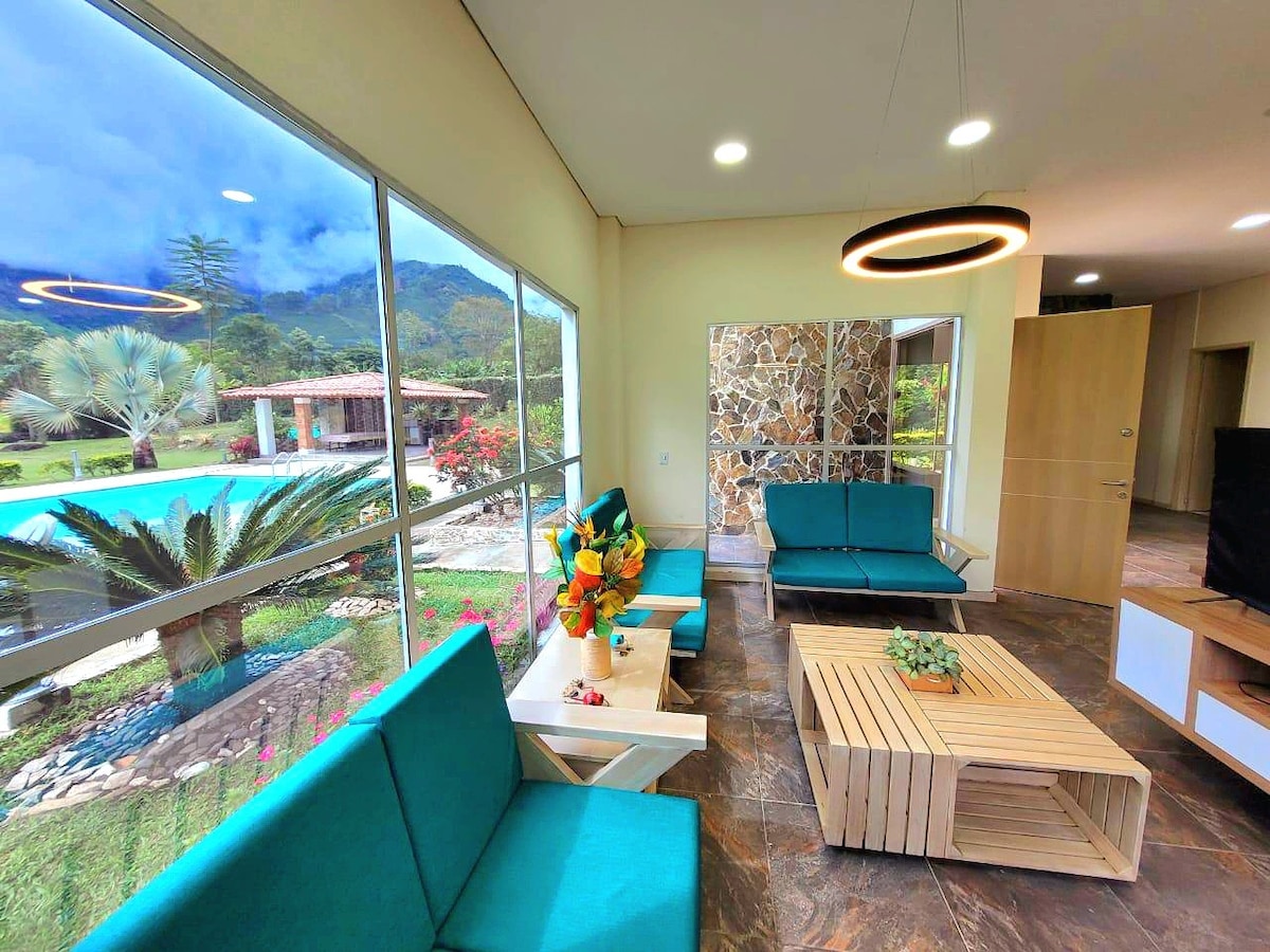 Bienvenidos a la Finca Las Lomas; hermosa propiedad para compartir en familia y amigos, está ubicada dentro de una finca ganadera, rodeada de naturaleza y hermosos paisajes, como la vista al Valle del Cauca. La casa es de una planta, es fresca y agradable, tiene cocina totalmente dotada, dos salas, comedor, 4 cuartos cada uno con aire acondicionado y cuatro baños completos. Zona de estar de piscina con sala y comedor, asador con fluidez de aire y 1 baño completo adicional.