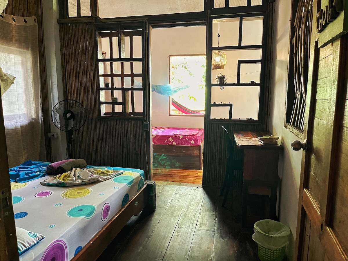 La habitación es cómoda, está ubicada en el segundo piso de la posada y es de infraestructura rústica, tiene vista al mar, cama doble, ventilador, baño privado, dotadas con toallas de mano, cuerpo y jabones. Tiene un acceso directo a la sala de estar con vista al mar, y hamacas para disfrutar de una estadía agradable.