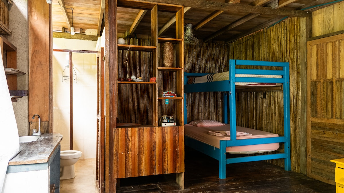 The Private Cabin strikes the perfect balance between comfort and nature. Designed for two people, it features a double bed, a private open-air bathroom with an indoor garden, and a terrace with chairs and a hammock—ideal for relaxing. It also includes a fan, mosquito net, USB outlets, and a clothing shelf. A functional space surrounded by jungle and sea, made for disconnecting without giving up comfort. Just bring your sense of adventure! 🌊🌿