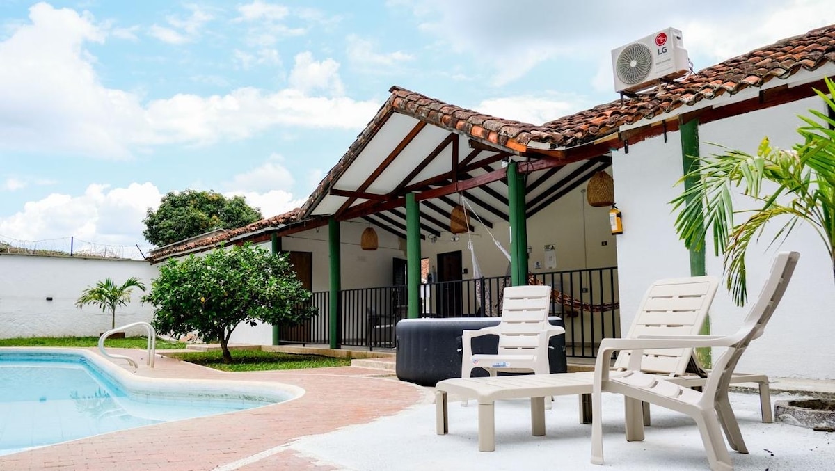 Bienvenidos a la Finca Las Lomas; hermosa propiedad para compartir en familia y amigos, está ubicada dentro de una finca ganadera, rodeada de naturaleza y hermosos paisajes, como la vista al Valle del Cauca. La casa es de una planta, es fresca y agradable, tiene cocina totalmente dotada, dos salas, comedor, 4 cuartos cada uno con aire acondicionado y cuatro baños completos. Zona de estar de piscina con sala y comedor, asador con fluidez de aire y 1 baño completo adicional.